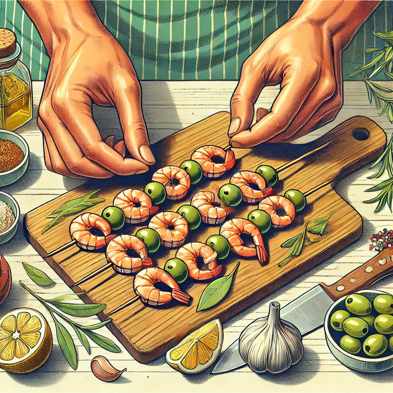The beauty of this dish lies in its simplicity. Start by preparing the shrimp marinade. Combine olive oil, minced garlic, lemon juice, and the spices in a bowl. Add the shrimp, ensuring each piece is well-coated, and let it marinate for 20–30 minutes. Meanwhile, prepare your skewers by alternating shrimp and olives to create an attractive presentation.